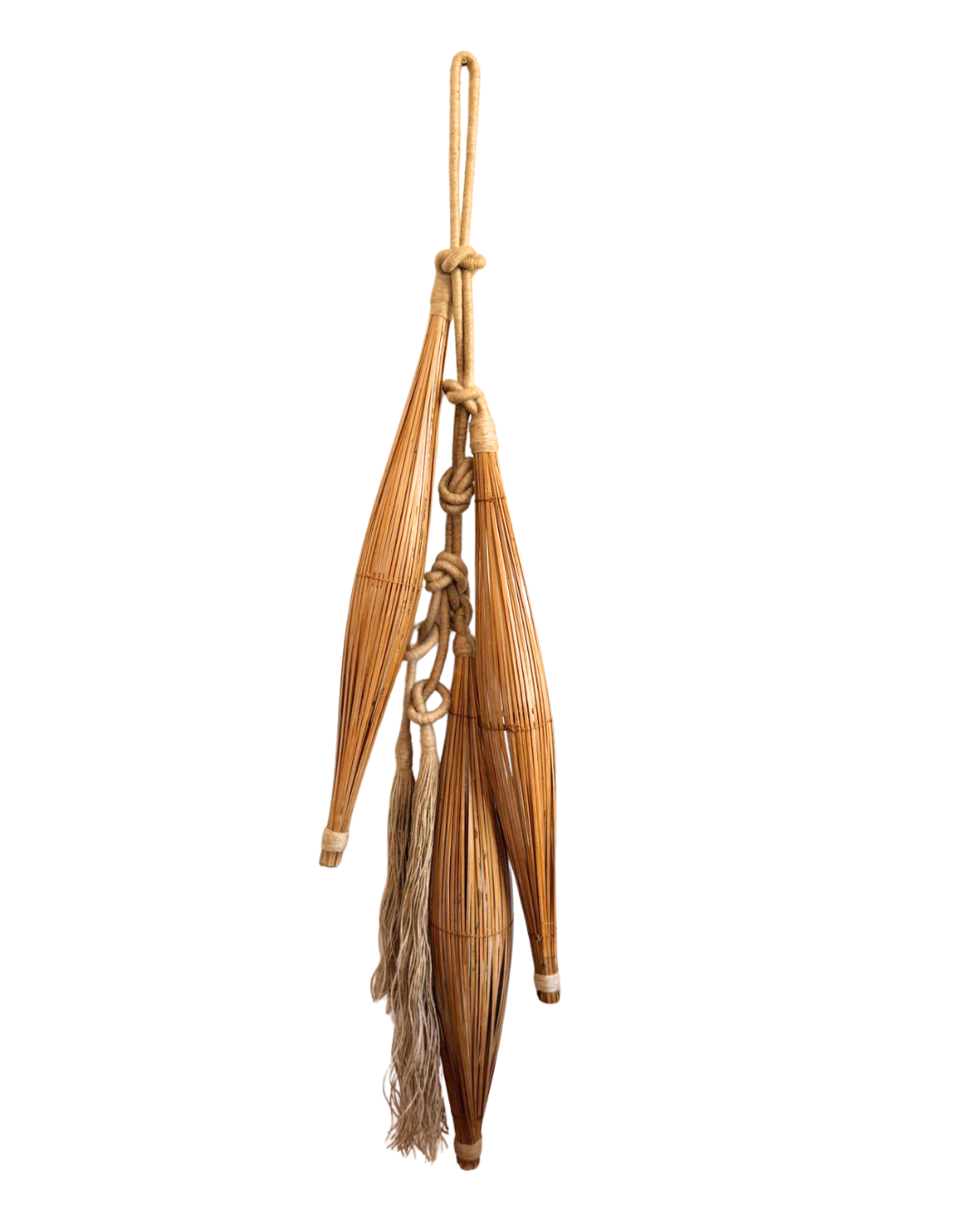 Sua composição valoriza a pureza da fibra, os nós estruturais e o movimento natural dos elementos, revelando um design que dialoga com a arquitetura e com a luz.